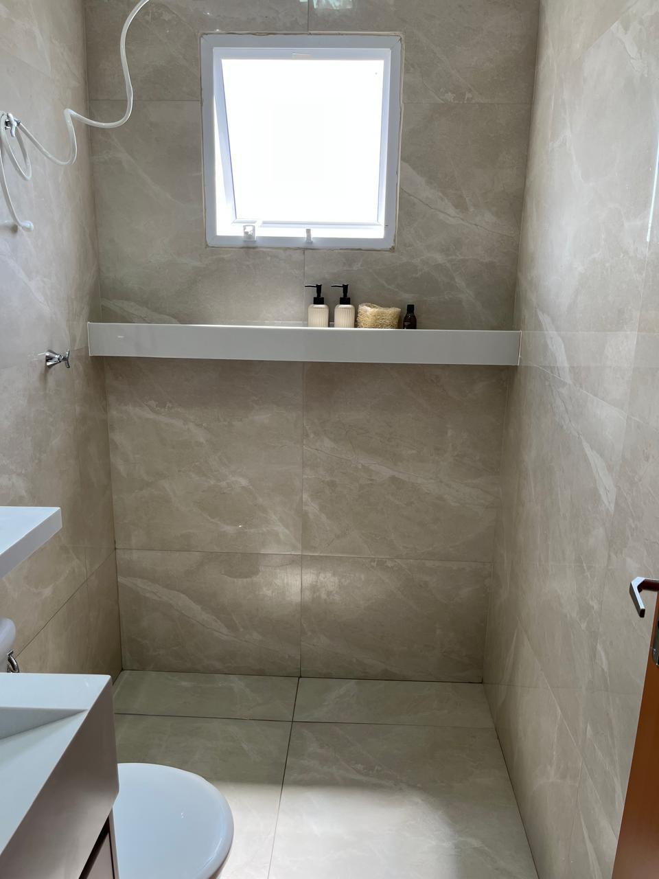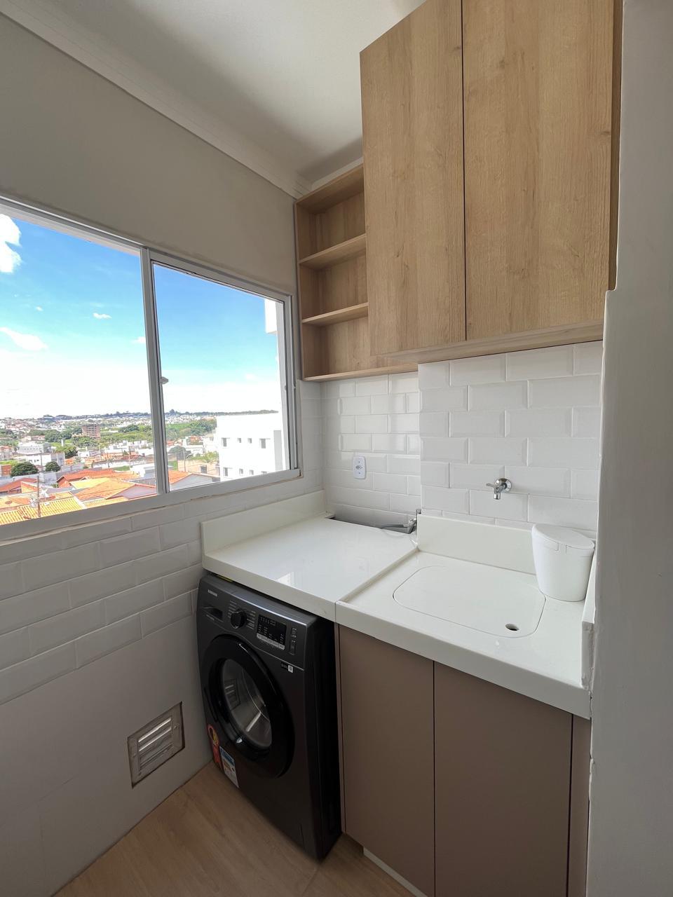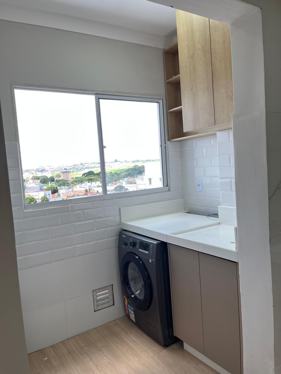 São 2 quartos sendo 1 suíte, sala, cozinha, banheiro social e lavanderia. Uma vaga.