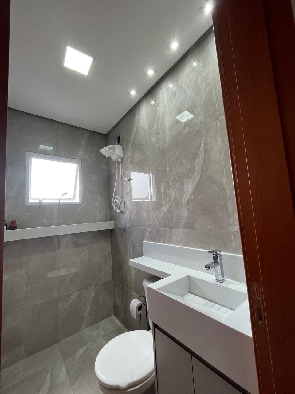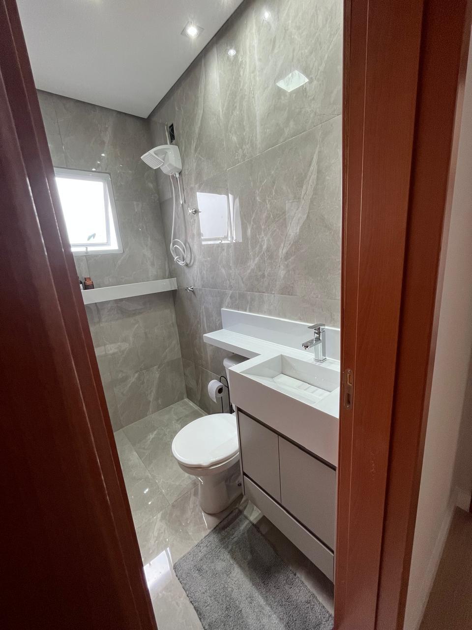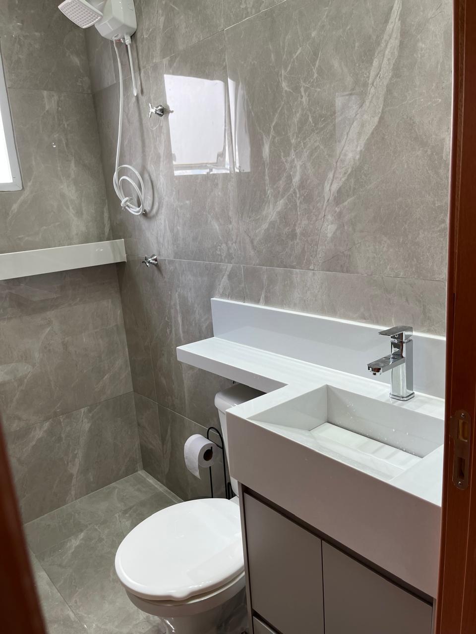 São 2 quartos sendo 1 suíte, sala, cozinha, banheiro social e lavanderia. Uma vaga.