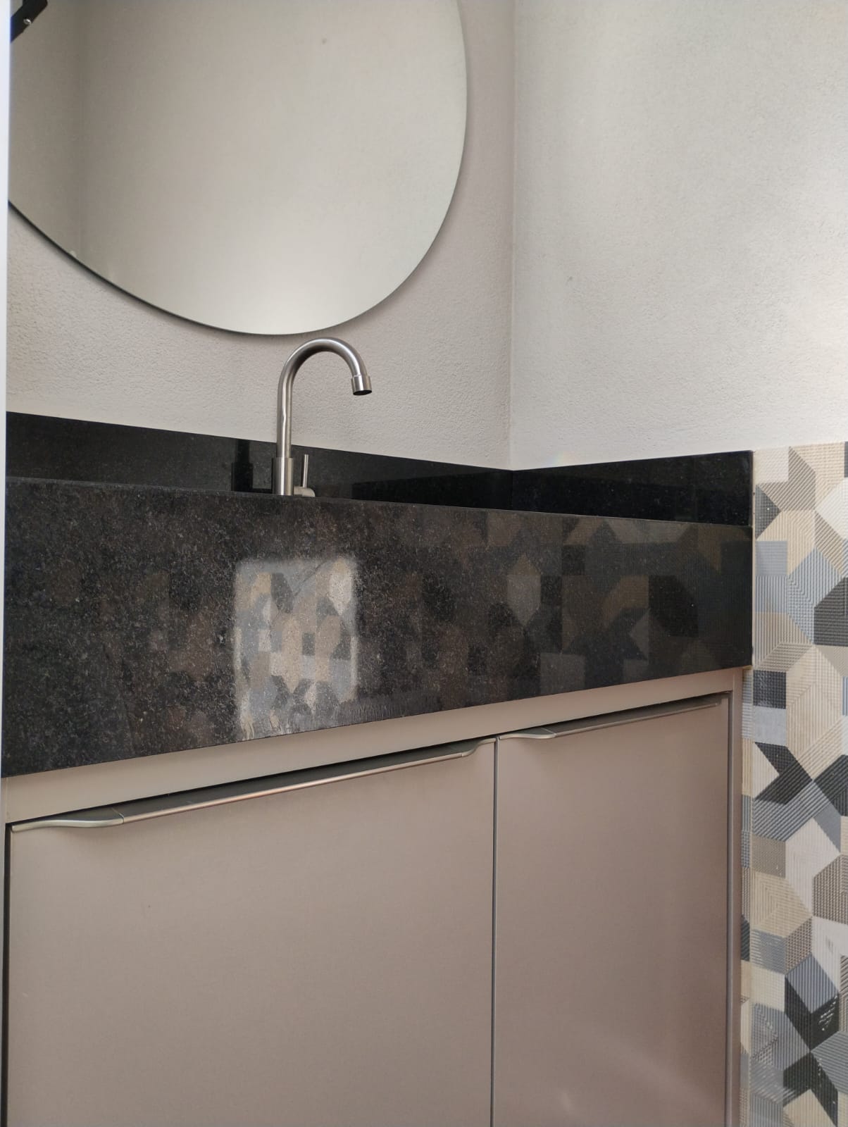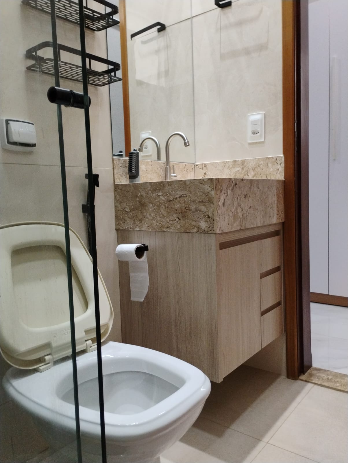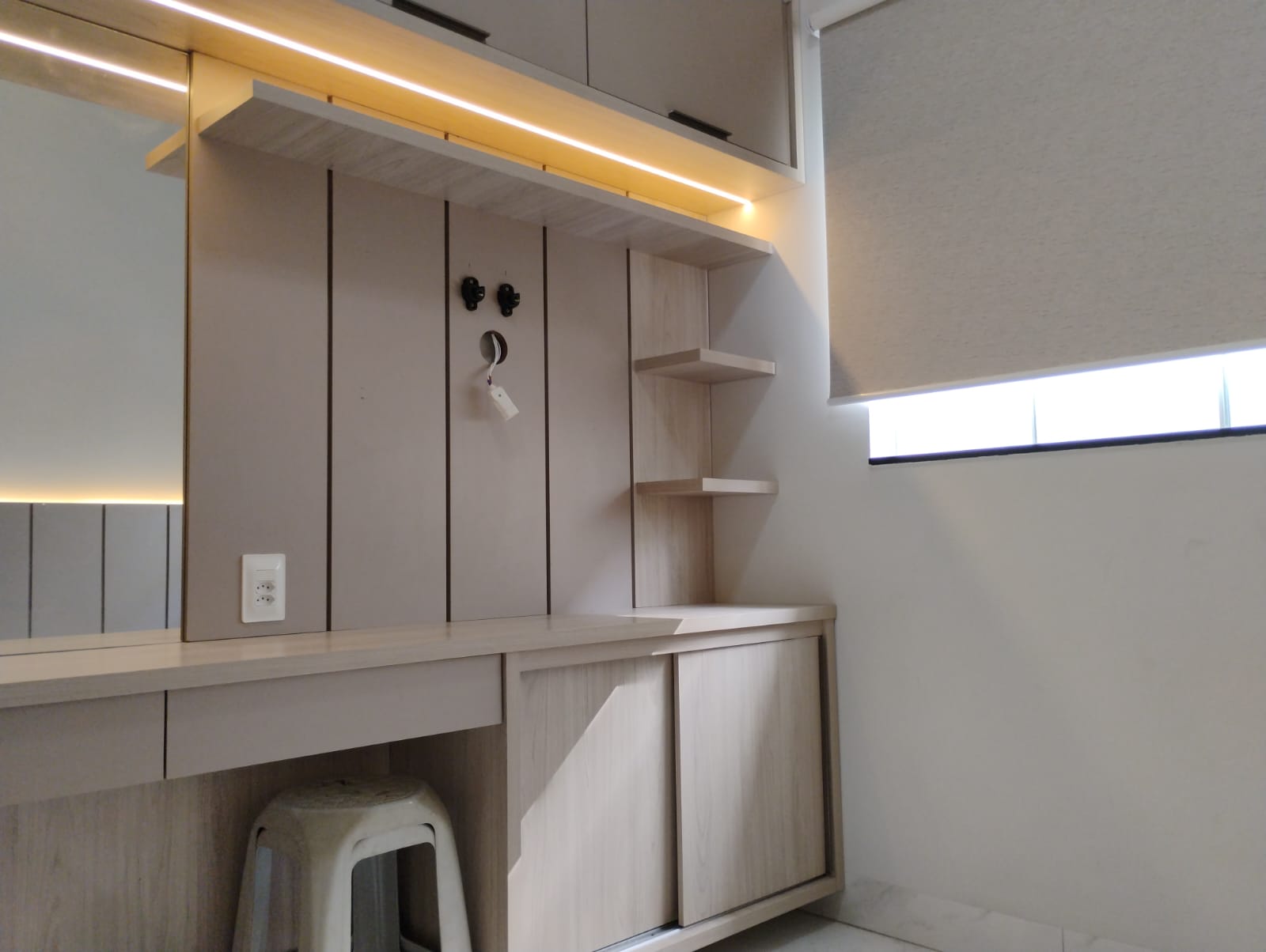 Cozinha com armários planejados, Cooktop, depurador e forno elétrico;